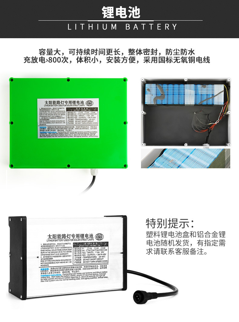 太陽能鋰電池:12V系統(tǒng)電壓,品牌三元電芯,30AH鋰電池。